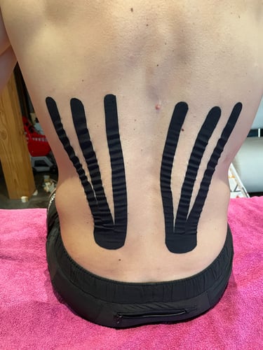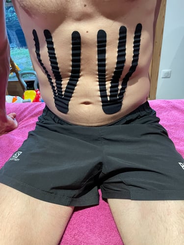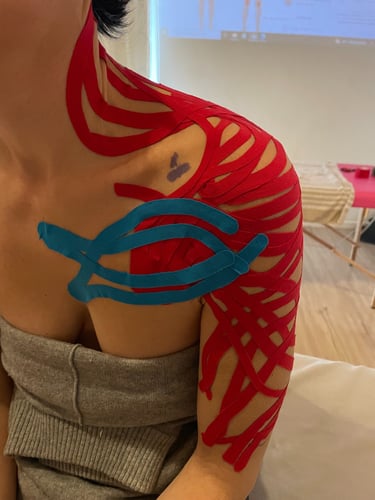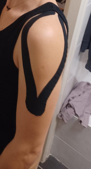 Le Taping kinésiologique est basé sur les capacités naturelles de guérison du corps et consiste en l'application d'un ruban adhésif élastique sur la peau Pose de Tape après massage : 15€ par zone Pose de Tape seul : 25€ par zone (environ 15min de pose)