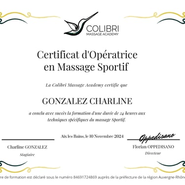 Je recommande vivement Charline pour ses massages bienfaisants. Elle est à l'écoute et a transformé ma récupération post-entraînement. Une expérience à renouveler!